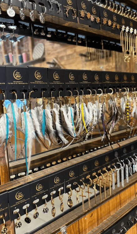 Mini-boutique consacrée aux bijoux inspirés de la nature : pièces artisanales locales en bois, pierres et métal précieux.